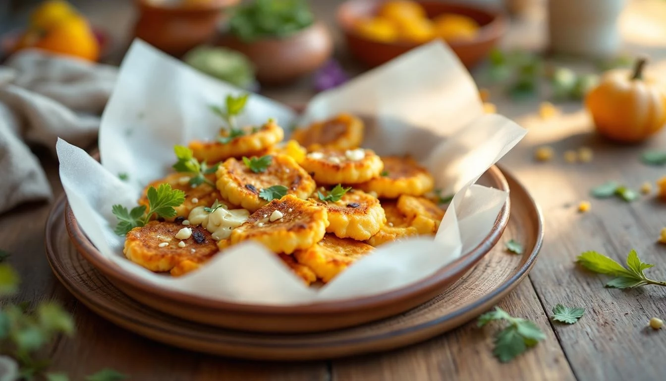 Le frittelle di fiori di zucca vanno gustate appena fatte, quando la pastella è ancora croccante. Se proprio devi prepararle in anticipo, tienile su una gratella in forno tiepido (50°C) per massimo 30 minuti: la circolazione d’aria evita che si ammoscino. Non conservarle coperte o in contenitori chiusi: l’umidità è il nemico della croccantezza. Il giorno dopo possono essere riscaldate in forno ventilato a 180°C per 5 minuti, anche se non torneranno mai come appena fritte.